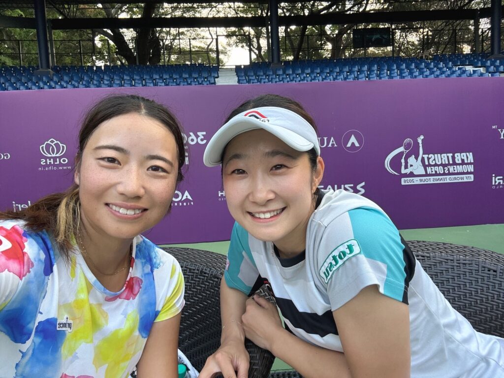 ITF 10万ドル大会では初優勝となります。ペアの松田選手とは10歳くらいからの仲良しなお友達で、同じコート上で苦しい場面も協力し合い、トライし続けた事が結果に結ばれてとても嬉しかったです。とても自信になる大会でした。